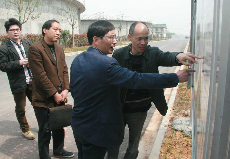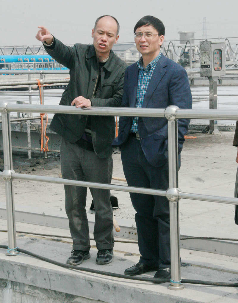 下午,紹興市環保局副局長肖理生帶隊到江濱水處理公司實地調研印染產業集聚區污水集中預處理情況、縣環保局領導陪同。